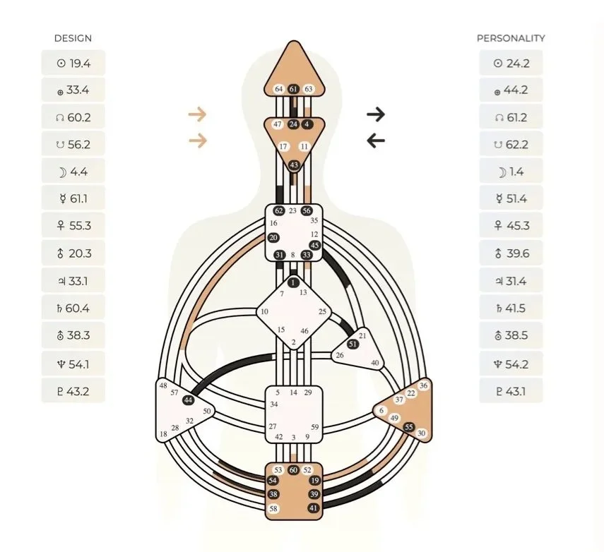 Much like an astrological birth chart, Human Design (HD) is based on your exact date, time and location of birth. In addition to astrology, Human Design also incorporates facets of Kabbalah, I’Ching, Myers-Briggs, biochemistry, genetics and the chakra system. These all form, in my humble opinion, an insanely comprehensive map called a body graph.